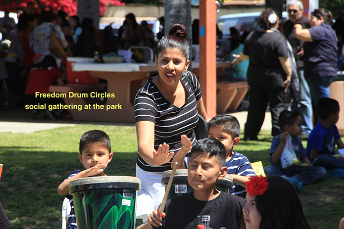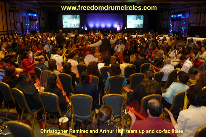 Every individual contributes their unique percussive expression to the mix guided by Christopher Ramirez, a highly experienced Motivational Rhythm Facilitator. Participants transform into a one-of-kind percussion ensemble that transcends all boundaries and perceived limitation of cultural, language, ability, social economics, age and skill level. There is no need for prior drumming experience.