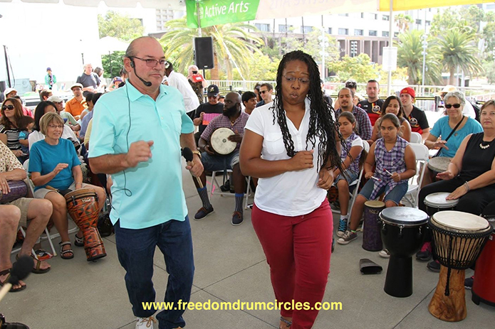 Freedom Drum Circle’s Team building drumming programs facilitate potential and human connection through the power of rhythm. These “in the moment rhythm experiences” break down barriers allowing for platforms that build trust, camaraderie and success. They are immersive and memorable rhythmic experiences that can change and inspire your idea of what employee and workplace connection really means. The high energy pulse of the rhythms coupled with the dynamic exchange of participant’s ideas are grounding and empowering. This promotes productive thinking resulting in meaningful outcomes.